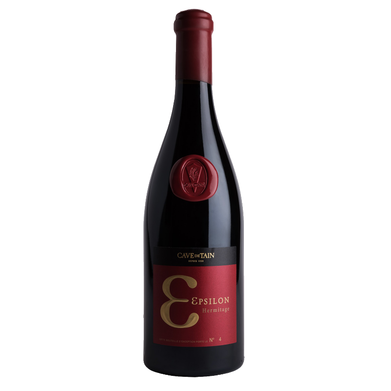 Epsilon est la quintessence de l'Hermitage. Issu de deux terroirs d'exception, ce vin procure un pur plaisir hédoniste pour les grands amateurs et les épicuriens. Il n'est produit que 1 000 à 1 500 bouteilles d'Epsilon, exclusivement dans les grandes années. Un trésor de la Cave de Tain.